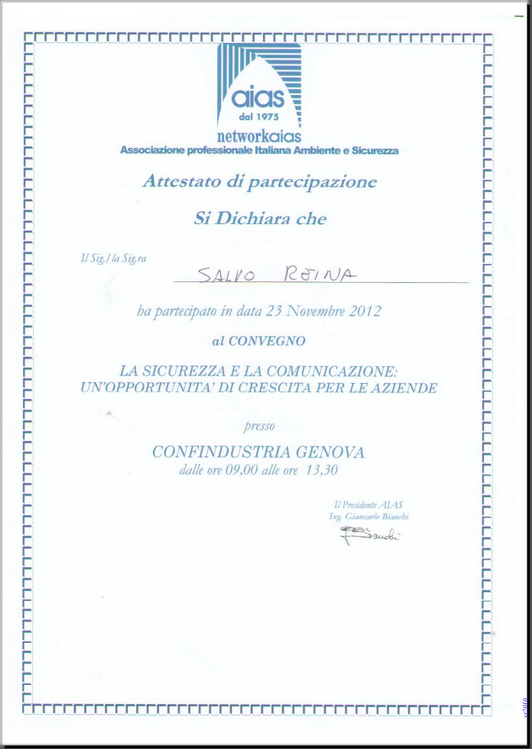 I documenti riprodotti da originali si riferiscono a riconoscimenti, accreditamenti, attestati e certificazioni dal 1987 ad oggi. Naturalmente, per alcuni di essi affiliazioni e relativi schemi di normazione potrebbero non essere aggiornati e/o non più sostenuti.