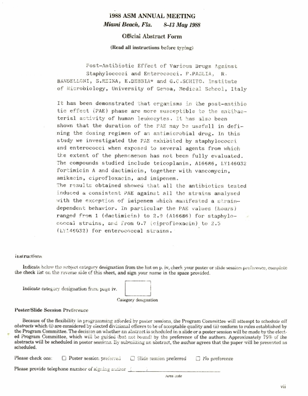 Ammissione Istituto di Microbiologia di Genova - 1985