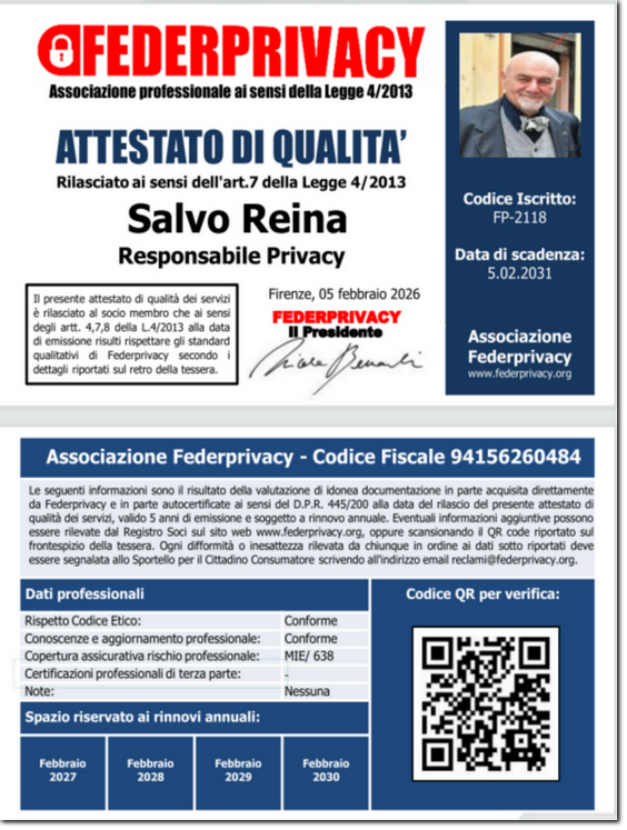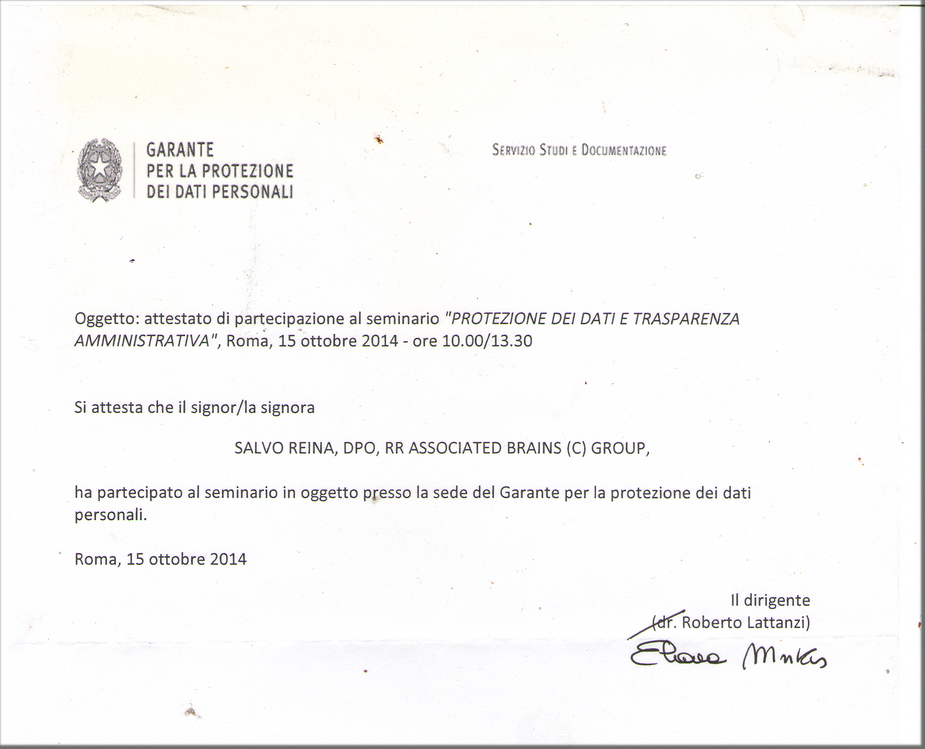 I documenti riprodotti da originali si riferiscono a riconoscimenti, accreditamenti, attestati e certificazioni dal 1987 ad oggi. Naturalmente, per alcuni di essi affiliazioni e relativi schemi di normazione potrebbero non essere aggiornati e/o non più sostenuti.